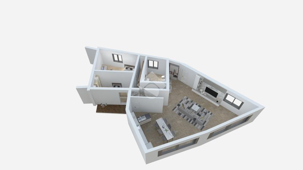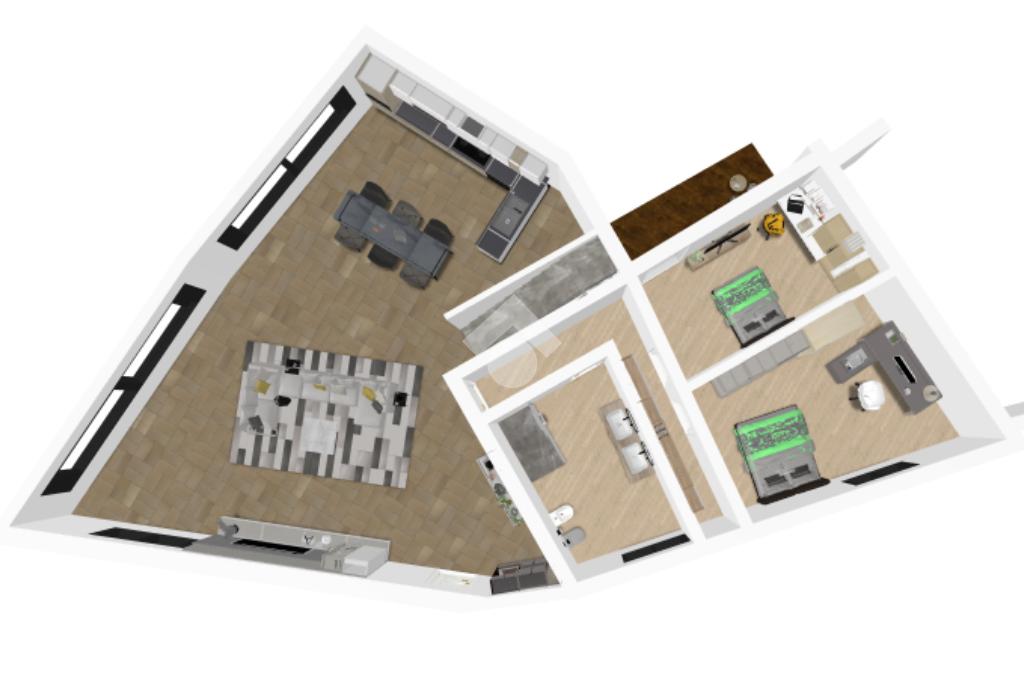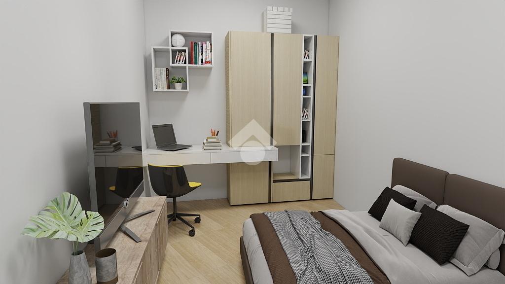Nella zona notte è possibile realizzare un bagno finestrato, due camere da letto singole (una camera dotata di balcone) e una camera matrimoniale con bagno privato o cabina armadio.