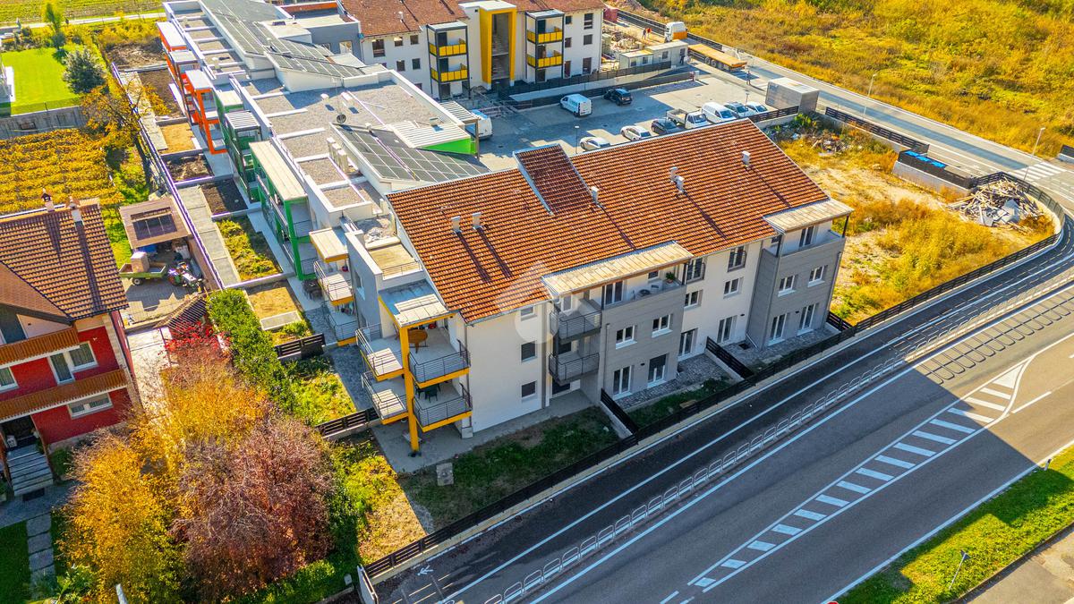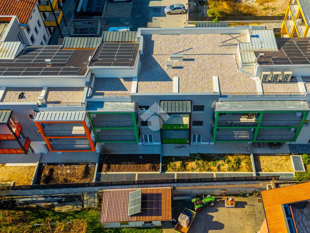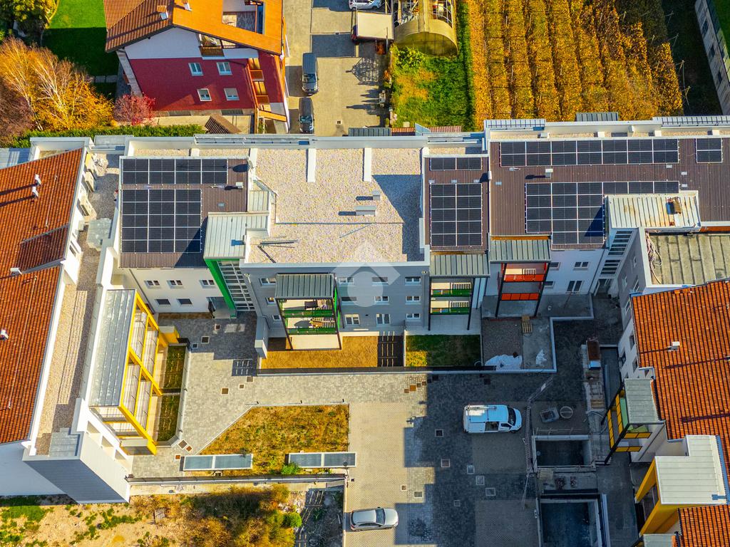 L'appartamento è dotato di finiture moderne, con infissi in PVC triplo vetro, tapparelle elettriche in tutto l'immobile, impianto di riscaldamento e raffrescamento a pavimento e sistema di deumidificazione e ventilazione meccanica controllata (VMC), che assicura una qualità dell'aria ottimale.