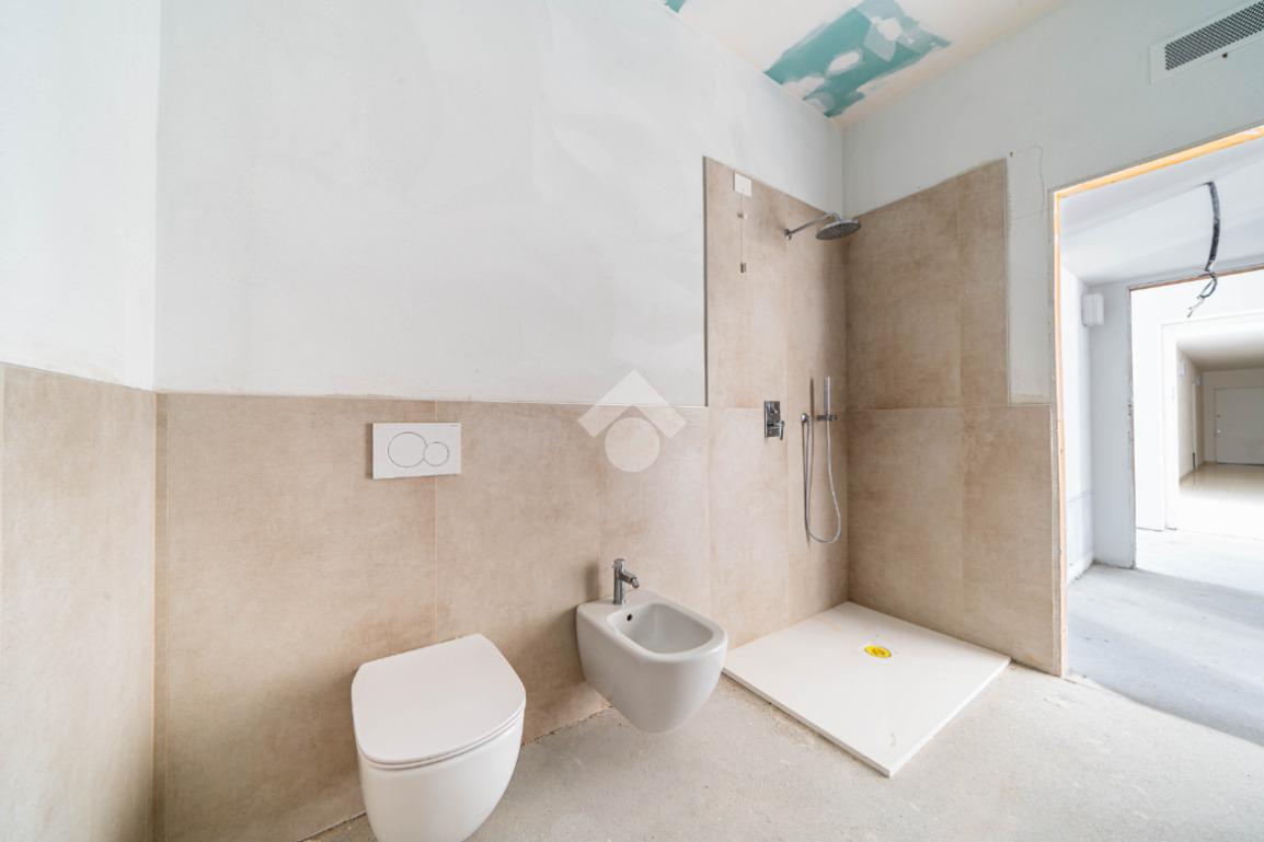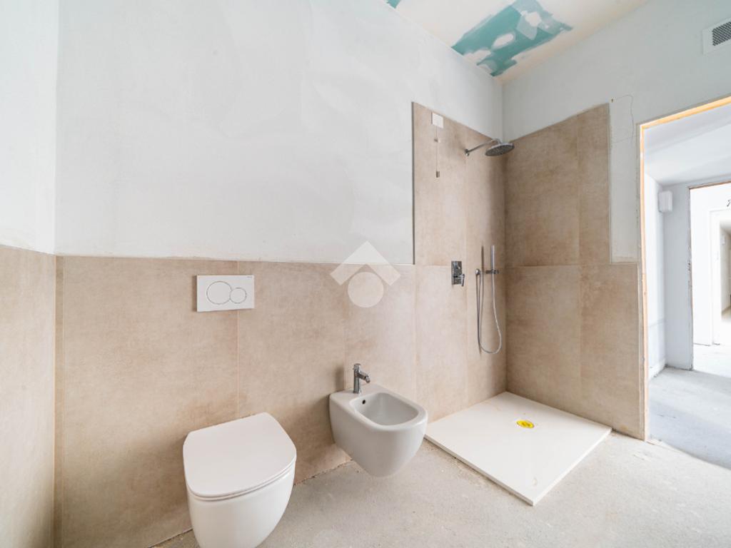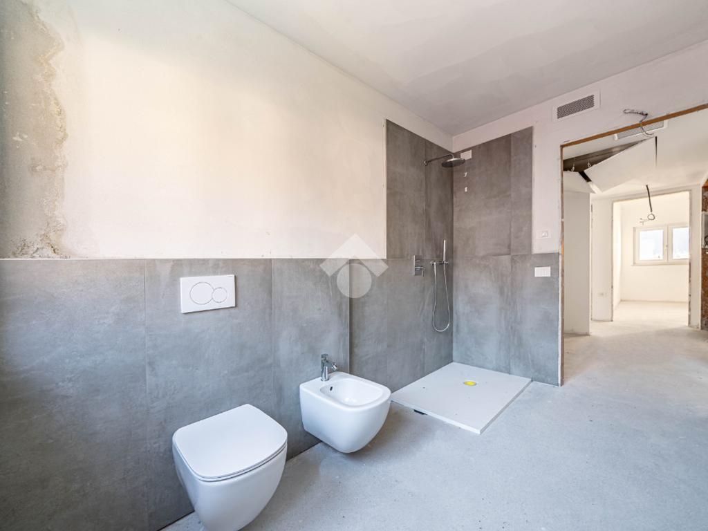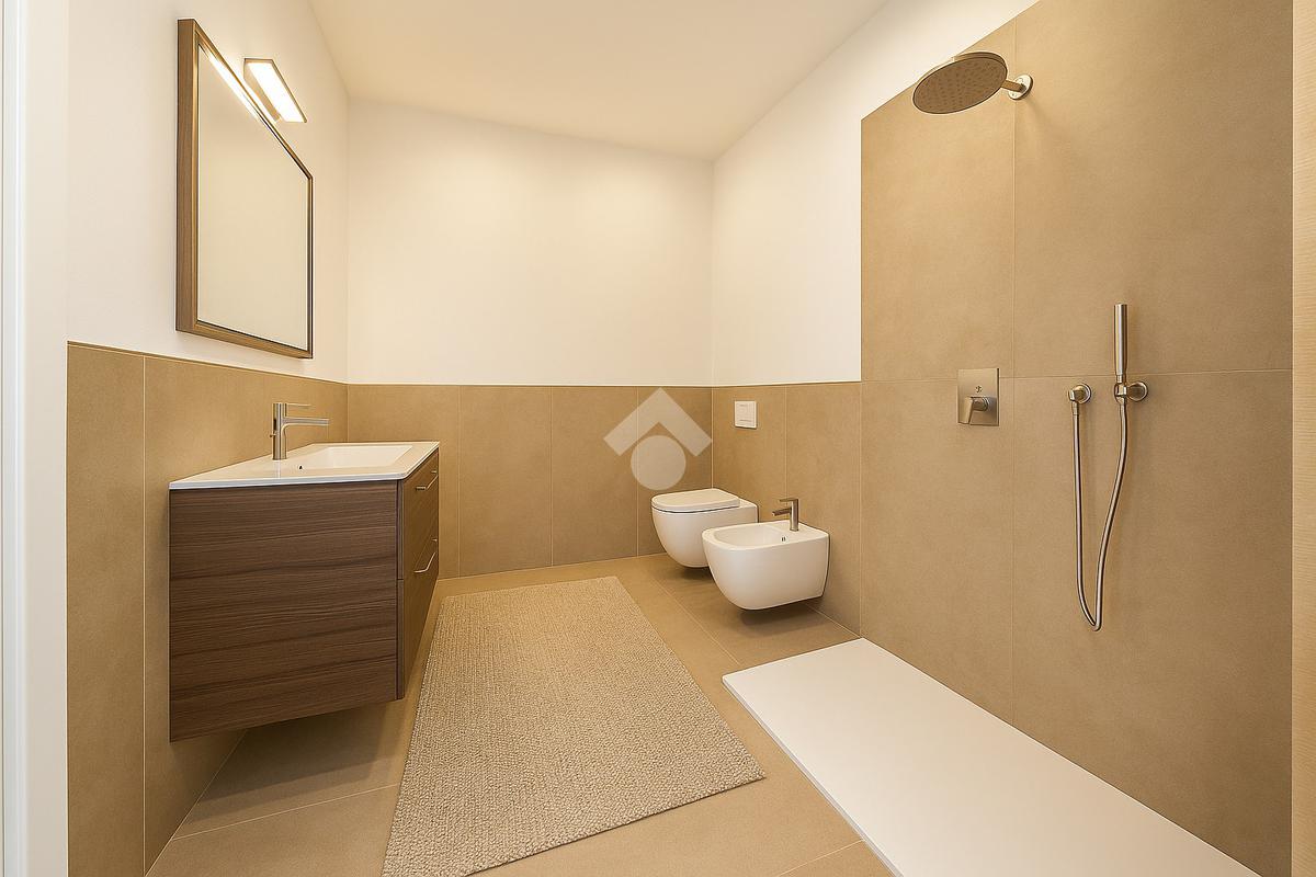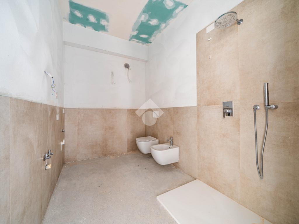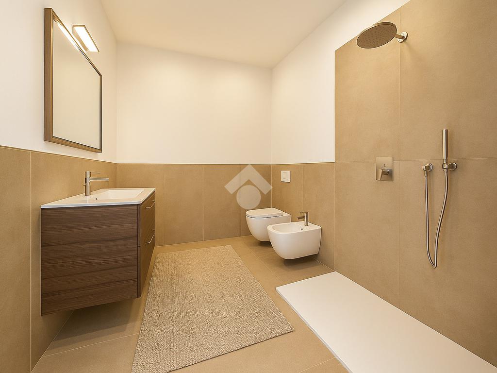 La soluzione viene consegnata con la possibilià di scegliere le rifiniture, la pavimentazione, la rubinetteria e i sanitari (compreso piatto doccia) tra le scelte di capitolato.