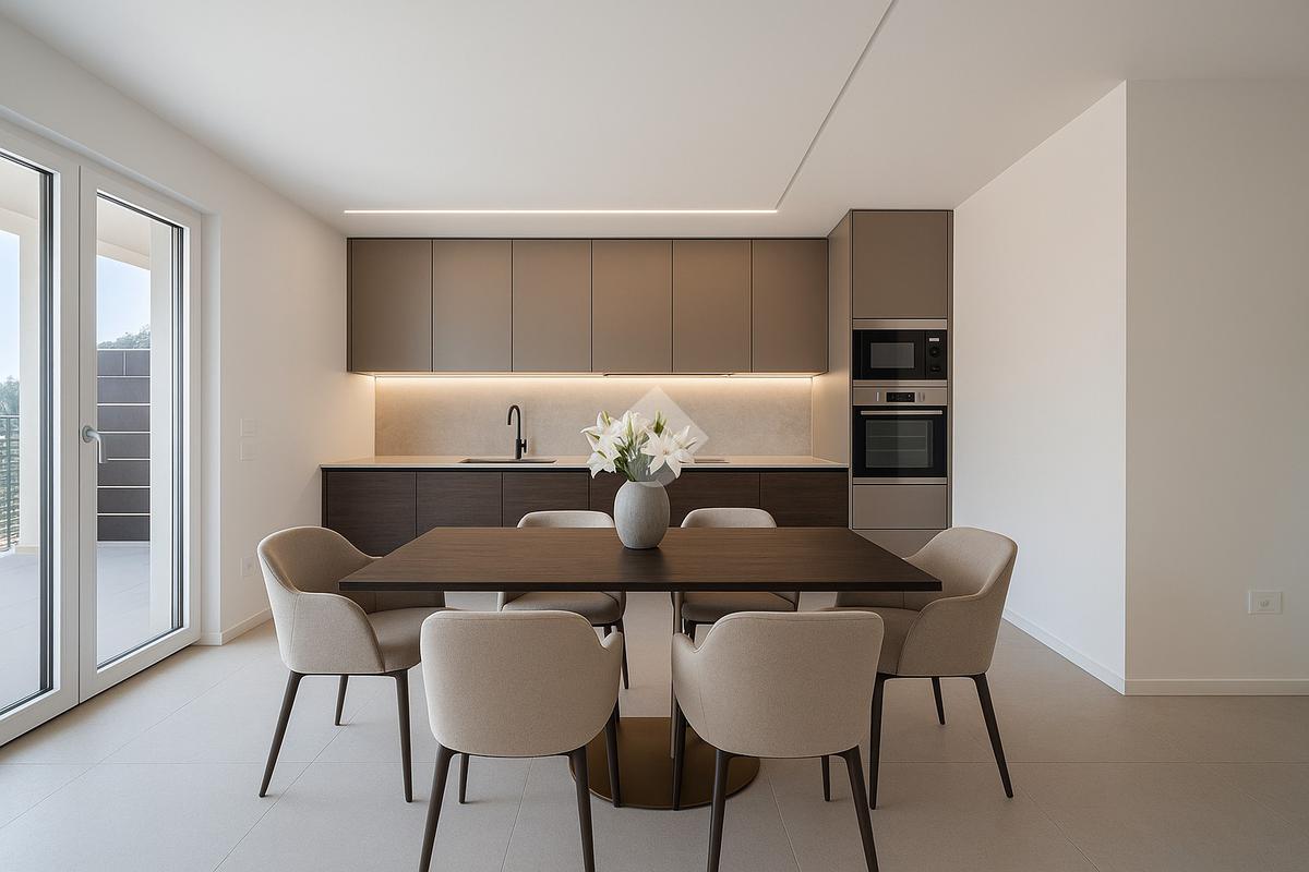 L'appartamento dispone di cappotto, infissi in triplo vetro, tapparelle elettriche, riscaldamento e raffreddamento a pavimento, portoncino blindato, allarme perimetrale e VMC.
