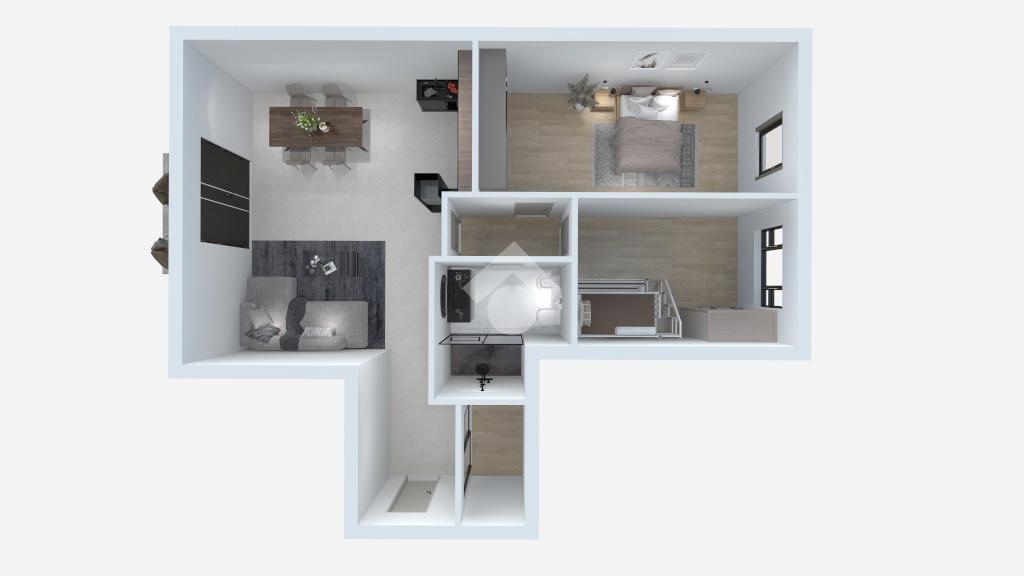 La soluzione viene consegnata con la possibilià di scegliere le rifiniture, la pavimentazione, la rubinetteria e i sanitari (compreso piatto doccia) tra le scelte di capitolato.