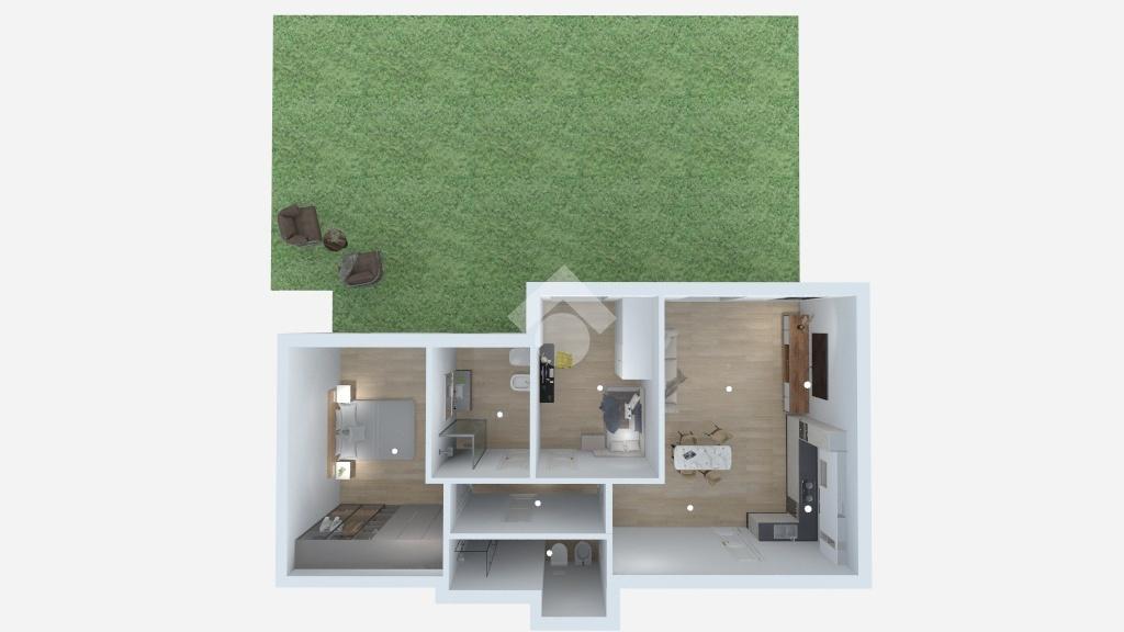 L'appartamento è circondato da un plateatico e a seguire un giardino privato, perfetto per chi ama il contatto con la natura.
