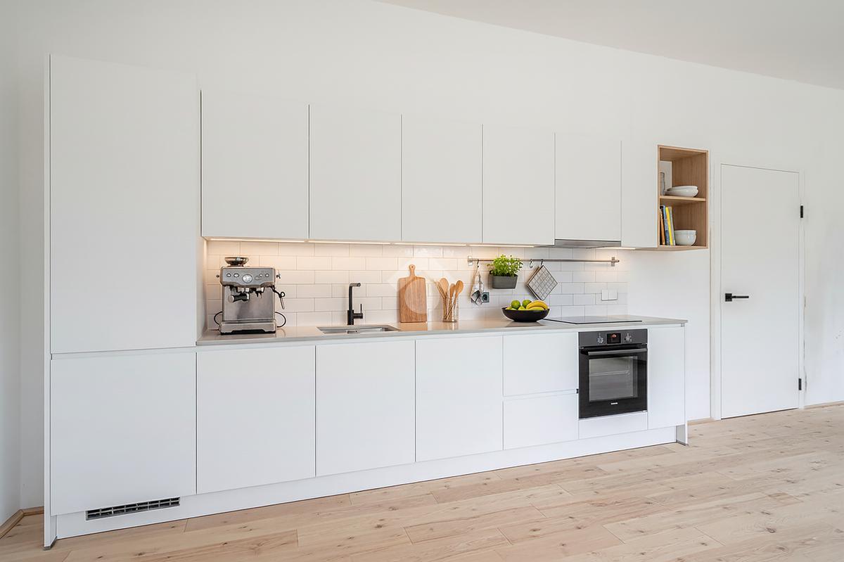 Il soggiorno e la cucina, luminosi e accoglienti, si aprono su un terrazzo che regala una piacevole vista sui dintorni.